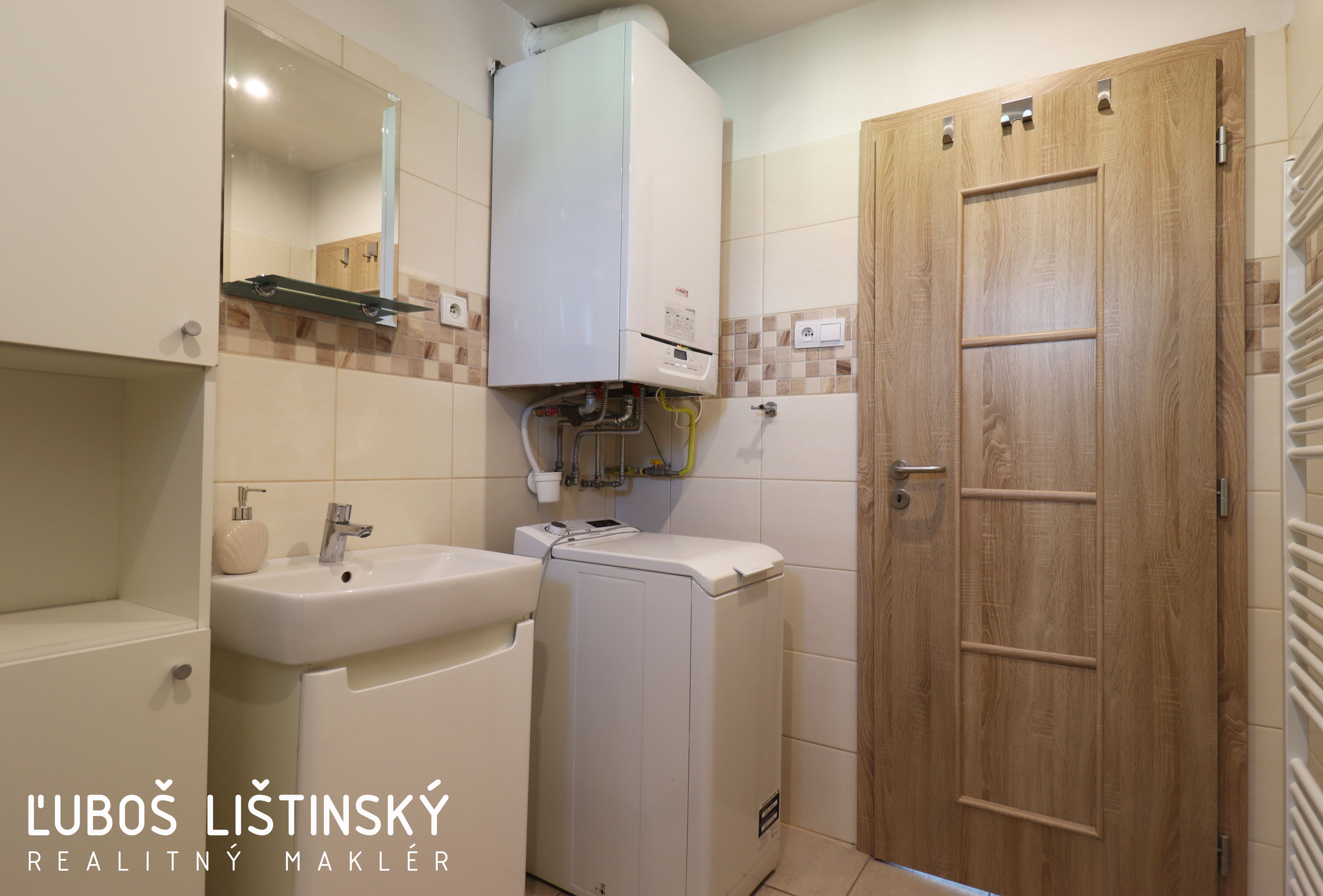 – v kúpeľni sprchovací kút, umývadlo, toaleta a pračka